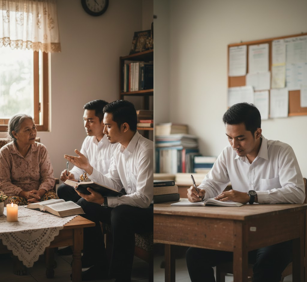 Dalam dunia pendidikan teologi, pembelajaran tidak hanya berpusat pada penguasaan teori, tetapi juga pada penerapan nilai-nilai iman dalam kehidupan nyata. Salah satu bentuk pembelajaran yang mengintegrasikan teori dan praktik adalah melalui kegiatan pelayanan pastoral yang didokumentasikan dalam Journal Pastoral Mahasiswa. Bagi mahasiswa di Sekolah Tinggi Teologi Istto Hikmat Wahyu, journal pastoral menjadi sarana penting untuk merefleksikan pengalaman pelayanan, mengembangkan kepekaan rohani, serta membangun karakter sebagai pelayan Tuhan yang bertanggung jawab dan berintegritas.